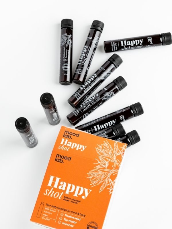 Food supplement with saffron, acerola, guarana and ginger Happy Shot