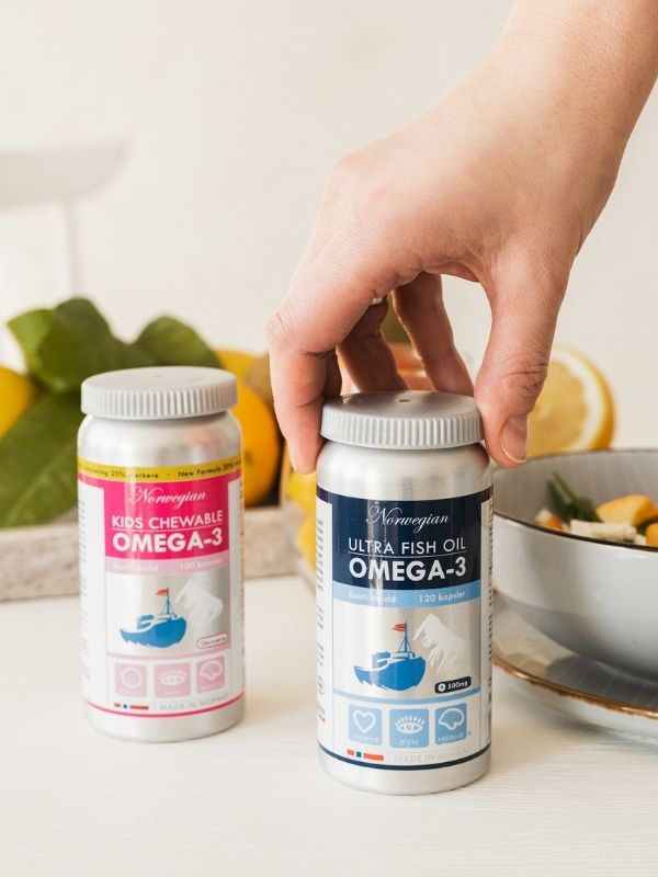 The highest quality Omega-3 food supplement for children for good physical and mental development of your child. The two marine fatty acids EPA (eicosapentaenoic acid) and DHA (docosahexaenoic acid) are important for good mental and physical development of a child. They are especially needed for brain function, eye development and good heart function.